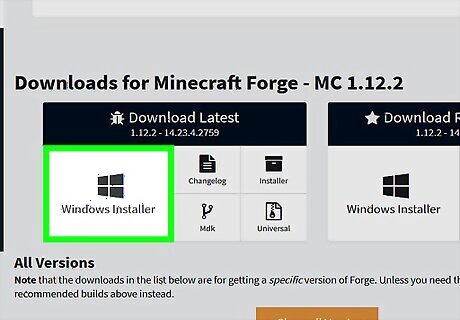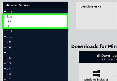 Find the version of Minecraft you want to mod. Do you want mods for a recent version or an old version? If you get Forge for the wrong version of Minecraft and the mods won't load and your Minecraft launcher may just close and re-open. To easily select the correct version, go to the section of the page that says "Select Minecraft Version," click the box that says "All," then find your version and click it. It will then show only results of that version.