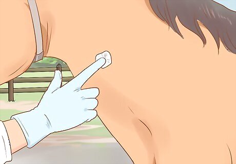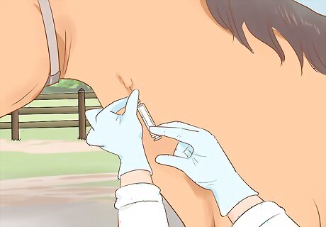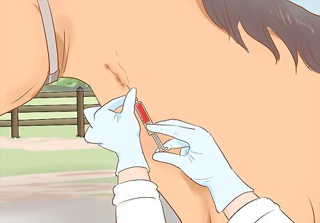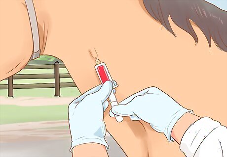 Wipe the draw site with rubbing alcohol to sterilize it. Dampen a piece of gauze with rubbing alcohol, then wipe the horse’s neck where you plan to insert the needle. Press down into the horse’s coat to really clean the area. You don’t want dirt and bacteria to linger on the skin. This will help you avoid accidentally pushing dirt or bacteria into the injection site, which can result in an infection.