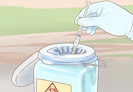 Dispose of the needle in a leak-proof, puncture-resistant container. Used needles can be hazardous if they aren’t disposed of properly. Choose a container that is secure so you know the needle can't fall out. Additionally, label your disposal container so people know it has sharps inside it. For example, you might place it in a sturdy plastic container that has a lid.