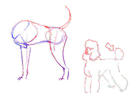 Draw the tail. Poodles usually hold their tails high which is a subtle detail of their characteristic look and is a more important detail than what it may seem.