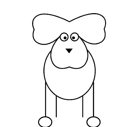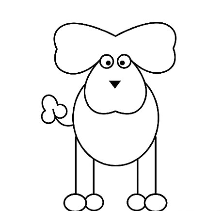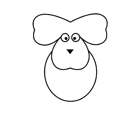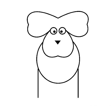 Draw the head. Poodles have fairly thin and long muzzles and floppy ears. Once again, we can take help from the skeleton to accurately draw the shape and proportions of the head. Doesn't look much like a poodle, does it? That's because we're not done yet. It still needs its fur which is a critical part of the poodle image.