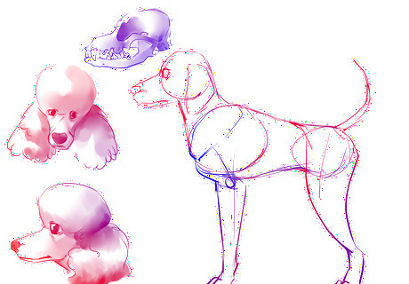 The standard poodle is an athletic dog with long legs and a rich coat. In line with all dog anatomy, make sure to keep the elbows at chest height. This applies to all other four-legged land mammals, too. It is important to learn the basic anatomy of a poodle before drawing on any fancy clips. Always sketch and put down a good base before finalizing your image to get all proportions and shapes right.