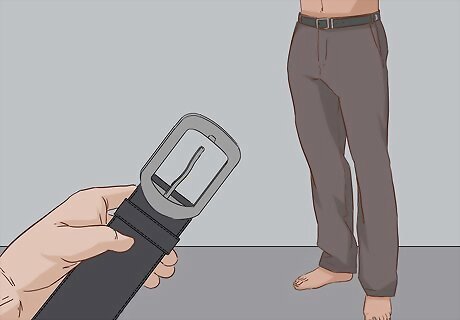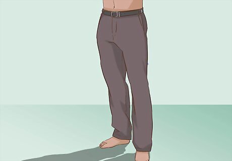 Start with pants. A pair of slacks is great, especially if they match your suit jacket. Chinos are also acceptable, but a two-piece suit is preferable, so try to have your slacks match your jacket. A dark color, like a blue, grey, or black, is probably your best bet as it looks flattering on everyone and makes you seem more professional. No jeans. Jeans, however tailored or designed, are not suitable for a job interview. Do not wear them, because the company that is interested in hiring you will not take you seriously and think that you aren't interested. No prints. Stick with solids. The one exception may be pinstriped pants. Tailored pants. You want them to be form-fitting without being revealing. Baggy pants give a rumpled and unprofessional appearance.