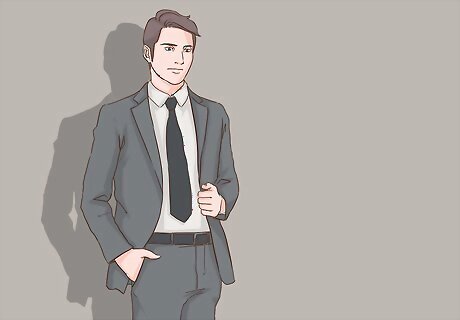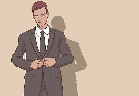 Make sure that the tie you wear complements the color of your suit. Most ties will look great with a dark-colored suit, so don't worry too much about it. Stay away from neons and pastels. Avoid bow ties or bolo ties. While these are not exactly inappropriate, they are often viewed as "quirky" and unexpected. Conventional ties are the more expected, conventional choice.