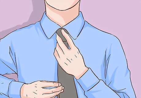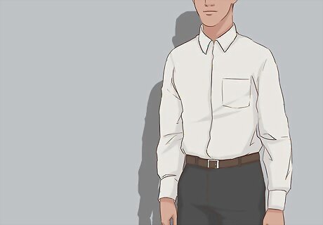 Choose a solid white or blue shirt. An overly bright shirt, or those with patterns shirts are typically informal. A starched white or blue shirt is perfectly acceptable, even if it seems a little bit plain. Wear long-sleeve shirts, even in summer. It may be a bit uncomfortable, but long-sleeve is what's expected in a traditional workplace. A straight collar is also more formal than a button down, but button downs will work in a pinch. Choose one with a medium spread. If you have a particularly large neck, a wider collar may look better.