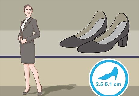 Choose close-toed shoes that are no taller than 1 or 2 inches (2.5 or 5.1 cm). Your job interview is enough of a balancing act as it is, so don't make your shoes into one as well. Shoes that are any taller than that risk looking unprofessional. Dark shoes are best.