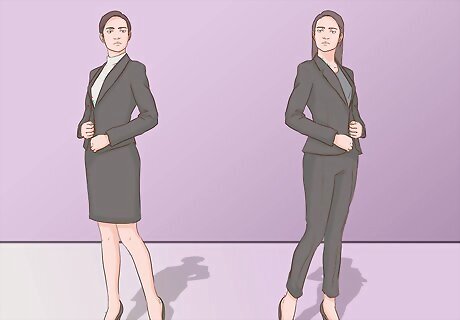 Stick with either a skirt suit or a pant suit. Women have a few more options for dressing business formal than men do, but they also need to be more careful when they dress. Having more options also means there are more ways to dress inappropriately. Skirt suits: stay with a dark color, a knee-length skirt, and a tailored jacket. Pant suits: stay with a dark color, as well as tailored pants and a jacket.
