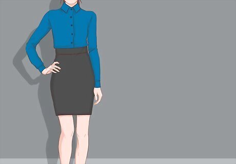 Dress with a blouse or top that is subtly patterned or solid. Transparent or see-through blouses are big no-nos. Wear a shirt or camisole underneath if needed. Stick with cotton, silk, or microfiber material. Material that can breathe well, like cotton, may feel the most comfortable in a potentially stressful situation.