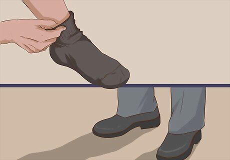 Pay attention to shoes and socks. Your shoes and socks may not be the focal point of your outfit, but they're important nonetheless. Choose dark, polished shoes, black or brown, stringed or loafers and dark socks or match them to either your shoes, pants, dress shirt or tie. Make sure they are knee length, as you don't want any skin to show when you sit down and your pants ride up. Also pay attention to their texture, they should be dress socks, not sport socks. A pair of black oxfords or cap-toed oxfords is a good choice of footwear. Get ones that don't have super thick soles so they won’t look like boots. Boat shoes are not acceptable for business formal.