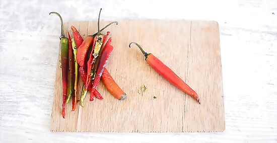 Cut the peppers into long pieces. Use a sharpened knife of your choice to make long, vertical cuts along each pepper. This will help to make sure that each pepper receives an even amount of air flow within the dehydrator. If the peppers are less than an inch in length, you may not need to slice them. The seeds can be removed from the pepper slices prior to placing them in the dehydrator, though seeds leftover in a dehydrator can be used for cooking purposes.