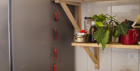 Hang up the pepper string in your kitchen. Be careful to keep the peppers away from any moisture, as this will interfere with the drying process. Once dried, store the peppers in a tightly sealed container. It usually takes at least 3-4 weeks for peppers to air-dry.