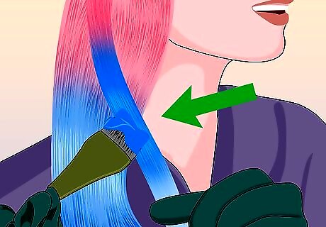 Brush on the color. Do this section by section, making sure to coat the hair thoroughly. If you’re only dying the ends of your hair, just look for the lightened portions and paint them.