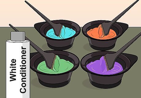 Mix pastel colors in separate bowls. Create pale shades of orange, blue, purple and green by diluting color with white conditioner to achieve softer hues. Add a small amount of color into each bowl using conditioner as a base. Have a separate brush ready for each bowl of color. Alternately, you can use purchase pre-mixed pastel colors.