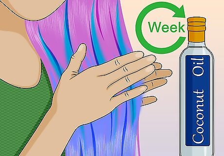 Condition your hair as needed. If your hair looks damaged or feels dry to the touch, visit a hairdresser for a moisturizing treatment. Alternatively, you can make your own. Quenching thirsty locks will help your color to last. Apply a coconut oil treatment to your hair once per week, or when your hair feels dry. If your hair becomes weighed down and greasy, use the treatment less often.