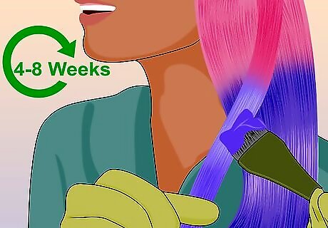 Maintain your roots and color streaks. Touch up your roots every 4-8 weeks, or as needed. When you notice your rainbow colors fading away, repeat the color streaking method. Opal hair color is high maintenance and tends to fade fast. Always divide your hair into clean sections when you touch up your roots. You don't want to overlap your color—that's when you're going to start getting bands in your hair.