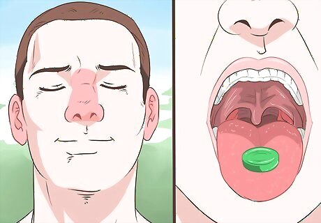Focus on your senses. One mindfulness technique is placing yourself completely in the moment. You can do this by focusing on your senses. When you are in an uncomfortable situation, close your eyes or choose a spot to look at. Go through the five senses and focus on things you can see, hear, touch, taste, and smell. This can help you reduce anxiety while you are around others. For example, when you are feeling anxious, you can start by choosing three things that you can see around you, then three things you can touch. Next, focus on three things you can hear. Inhale and focus on a couple things you can smell, then see if you can taste anything. You may need to intentionally do these things. Try sniffing something pleasant, like a flower or an essential oil, or putting a piece of hard candy in your mouth.