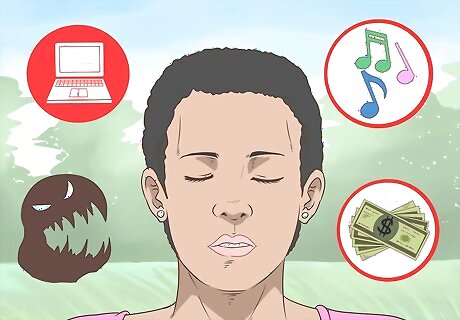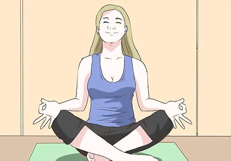 Meditate. Mindfulness meditation is a technique that can help you get out of your head and practice mindfulness. Meditation has been shown to reduce anxiety in people. With mindfulness meditation, you can take a step back from your thoughts and look at them without any judgment. Close your eyes. As you notice your thoughts and feelings, watch them go through your head in a neutral manner. Don’t judge them, agree with them, or even react to them. Just acknowledge that they exist. Next, pay attention to the way your body feels. Feel the sensations in your limbs and muscles. Pay attention to your breath as you inhale and exhale. Focus on your senses. In addition to meditation, you might also incorporate restorative yoga to help control your anxiety.