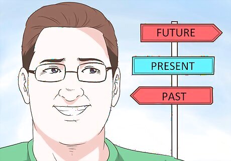 Focus on the present. One key to mindfulness is to focus on the present instead of worrying about the past or the future. By doing this, you are able to let go of things in that past that are causing you anxiety and not feel anxious about the future. Keep in mind that the goal of mindfulness is to get your mind to slow down and to help you to focus on the present. This practice can help to reduce your anxious and racing thoughts. For example, instead of worrying about what people are going to think about you later, or letting something that happened before ruin the moment, focus only on the present moment. Think about what the other person is saying, their facial expression, and where you are at the moment. When you feel anxious about the past or future, stop and bring your thoughts back to the present. What are you doing in this moment? Look around. What worries are there now? The ones from the past and present are not important in this moment.