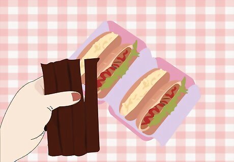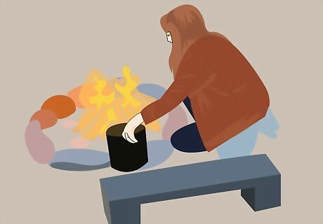Bring along lots of tasty treats. Who says camping cuisine needs to be limited to beef jerky, hot dogs, and dehydrated soups? If you pack foods and drinks you enjoy, you’ll ensure that at least your palate is happy. Yogurt and granola are easy breakfast foods to bring, and bagels and muffins work well too. Bean salads, pasta salads, fruit salads, and gourmet sandwiches are easily packable and could make for a tasty lunch or light dinner. For dinner, you could bring items to cook over the campfire, like macaroni and cheese or Dutch oven lasagna. A quick Internet search will give you dozens of ideas. Bring lots of ice in a cooler to keep your food from spoiling. To keep food safe from foraging animals, odor-proof plastic bags or bear canisters are useful.