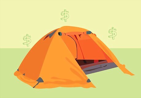 Select a good quality tent. Your tent will be your temporary home away from home, and if you choose well, you will enhance your camping experience. Consider choosing a tent with a larger capacity than you will actually need. This will give your more space and can be helpful if you don’t like closed spaces or if you move around a lot while sleeping. Look at the weather forecast before you get a tent. If you are a new camper, a three-season tent, designed to be lightweight and good for camping in moderate conditions in the spring, summer, and fall, will probably suffice. If you will face harsher conditions, however, a four-season tent may be the right choice for you. Bring a tarp to place under your tent to protect it from damp, soggy ground. Another useful item is a mat for your tent entrance to help keep down the amount of dirt tracked in to your outdoor home. Regardless of the type of tent you choose, you should be sure to bring along extra stakes for the tent, in case you have a problem with one.