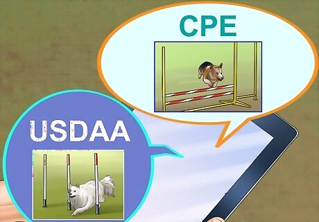 Compare course differences between the groups. There is no national standard for how agility trials need to be carried out. Instead, each group comes up with its own standard. You should familiarize yourself with the specific course set-up for each group. AKC has 4 different levels of competition. ACT is beginners, Novice is next, followed by Open, and the top levels are Excellent and Master. The levels for the Preferred Program are the same. The average spacing between obstacles is 18 feet to 23 feet or so with a few exceptions depending on the type of obstacles being used, the challenge being presented and the class. NADAC uses large spacing on courses and gives out fewer faults than some other organizations. However, the courses have shorter time limits requiring that dogs run faster. USDAA has several "games" classes that offer opportunities for different types of challenges than some of the others. CPE has lower jump heights and more generous course times. For a complete list of course specifics, visit each groups' website.