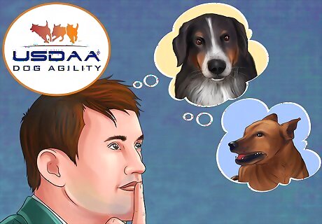 Consider your options. There are five primary groups that offer agility trials in the United States: American Kennel Club (AKC), North American Dog Agility Council (NADAC), United States Dog Agility Association (USDAA), Canine Performance Events (CPE) and UK International (UKI). While these are the five primary groups, there are many other groups that sanction agility trials. Search online for additional agility trials that might be offered by other groups in your area. The AKC agility trial requires dogs and handlers to negotiate an obstacle course. They have 2 types of agility programs, the Regular Program and the Preferred Program. Dogs in the Preferred Program jump one jump height lower then required by the Regular Program and they are allowed more time to complete the course. In both programs dogs must be measured at the withers to determine how high they will jump. The USDAA agility trial has two types of agility programs, the Championship Program, and the Performance Program. Compared to the Championship Program, dogs in the Performance Program will face lower jump heights and are allowed longer time on the course. In both programs, dogs must achieve a jump height determined by their own size. Larger dogs must jump higher than smaller dogs. The NADAC agility trials are often co-hosted by judging clinics that help fund NADAC Championships. Rules and regulations vary. At the NADAC Championship level, there are three classes available for dogs to compete in. Access to a given competition class depends on the dog’s participation and performance in NADAC competitions throughout the year. The more points a dog earns at NADAC events over the course of the year, the higher the competitive level the dog can compete in during the Championships. The CPE agility trials are co-hosted by various canine organizations. Consult event organizers for more detailed information.