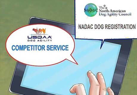 Pay the registration fee. Registration fees for agility trials vary. Some organizations charge $10 or $12 per run, with discounts if you enter your dog in more runs. Some registration fees depend on the event the dog is entered in. Consult the registration fee schedule for your dog’s specific event for more information.