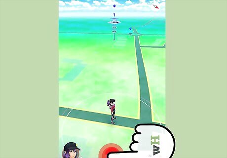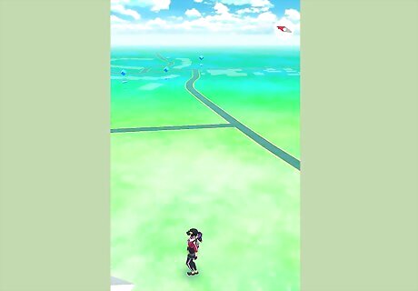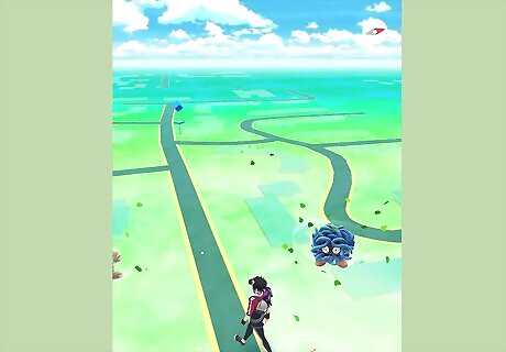 Walk around your area in the outside world. Look for Pokémon, which will pop up on your screen. They will look like small, dinosaur-ish animals that will appear on your screen relatively near to you.