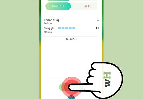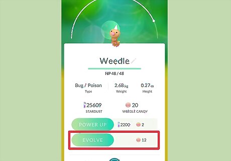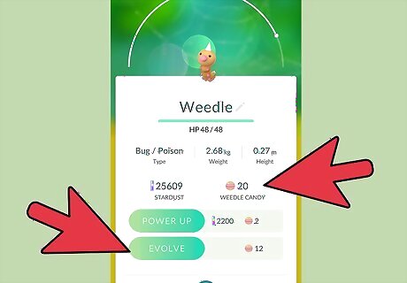 Look at the bar that says “Power Up.” Right below that, look at a bar that says “Evolve,” right below the number of Candy that you have. This is the button that you should press to evolve your Pokémon if you have enough Candy. If you have enough Candy, press “Evolve.” If you don’t have enough Candy, collect more Candy. Typically, you will need between 25 and 50 Candies to evolve your original Pokémon. However, these numbers will increase after you evolve your specific Pokémon for the first time.