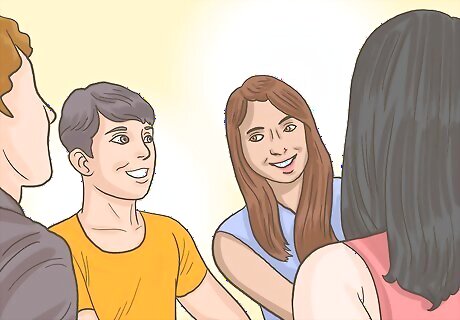 Interact socially in group settings. If it is hard for you to express yourself socially, becoming involved in group interactions will be helpful. There are more people involved to carry on conversation if you freeze up. You have the opportunity to talk to several different people and practice expressing your feelings to them. Spend time with people that you trust and have easy conversation with so it's easier to open up. Find ways to express yourself that feel comfortable. If talking about yourself is uncomfortable, then talk about something in which you have an interest, like music. You are still letting your conversation partner(s) get to know you without directly talking about yourself.