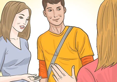 Restrict your interactions with your crush to group settings. While you get to know him, it is important to have other people around as a buffer. If you are suddenly overcome with shyness, there are other people around to bring into the conversation so that the pressure is off of you. Being in a group setting gives you a way to distance yourself if you realize that your crush is not the type of person you want to date, after all.