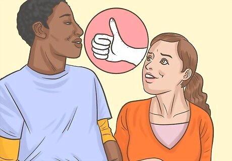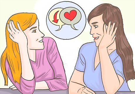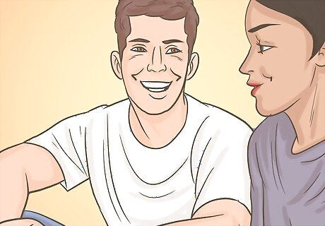 Use body language to let your crush know how you feel. As you prepare to let your crush know your true feelings for him, use body language to hint at it when you spend time with him. Using body language allows you to communicate your feelings in a way that does not require verbal communication. Become more comfortable using body language by practicing on a trusted friend or family member when you talk with them. Lean in to talk to him. Keep your body open and facing him when communicating (e.g. do not fold your arms across your chest). Gently touch him on the hand, arm, or shoulder while chatting, but keep it brief. Pay attention to whether he returns similar body language.