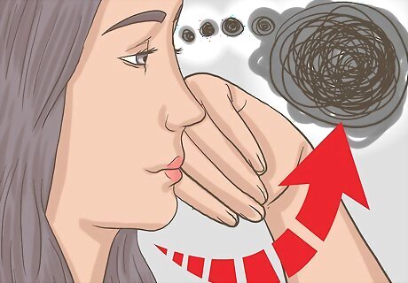 Develop a breathing exercise when you start to feel overcome with shyness. Prepare yourself to handle anxiety or shyness by practicing a breathing exercise. It will help to calm you and re-focus you on the task at hand, which is expressing your true feelings. Calming Technique: Inhale for a count of four through your nose. Next, hold the breath for two. Lastly, exhale the breath for a count of six through your mouth. Equal Breathing: Inhale for a count of four, and then exhale for a count of four. Both your inhalation and exhalation should be through the nose. Repeat as necessary to calm down. Simply focus on making your exhales longer than your inhales. This is a simple trick to help you relax without any specific counting patterns while breathing.