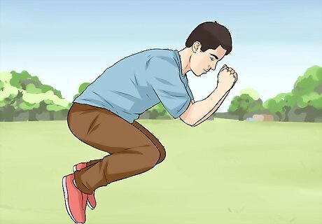 Keep arms and legs bent. It may be tempting to try and catch yourself fully as you fall with your arms. However, landing with your arms straight out and absorbing the full force of the fall with them can cause injury. Try keeping both arms and legs slightly bent as you fall. Landing fully on your arms in an attempt to catch yourself can break both your wrists and arms.