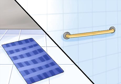Create a safe environment. Whether at work or at home, take a few steps to create a safe environment that removes the most common tripping hazards. Making frequently used rooms and spaces safe from trip hazards can greatly reduce your chances of falling. Review the following list for some helpful tips: Always close drawers after you are done with them. Don't leave cords or wires in walkways. Keep the area well lit. Walk slowly over slippery or dangerous areas, taking small controlled steps. Consider relocating if you live somewhere with steep stairs and falling is a concern. Otherwise, make sure you have handrails or a banister. Use non-slip bath mats in the tub and bathroom and consider installing a grab bar in the tub. Remove small throw rugs or use double-sided tape to make sure they don't flip up or slip.
