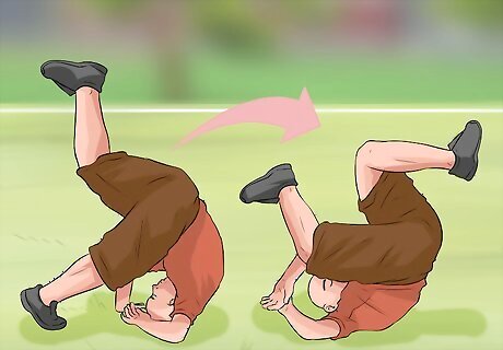 Turn as you fall. If you are falling either straight forward or straight backwards, try to turn your body so you land on your side. Falling directly on your back can cause serious injury to it. A frontal fall can cause damage to the head, face, and arms. By landing on your side you can reduce the chance of injury from high distances (for example, one way vertical paths).