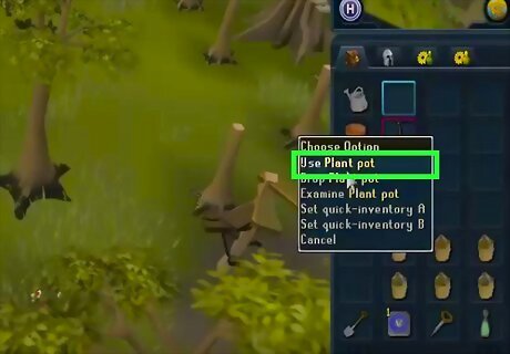 Get an empty plant pot. Fill it up with soil by using a gardening trowel on any farming patch.