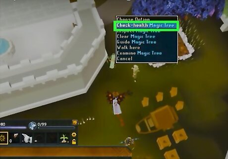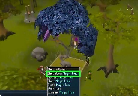 Harvest the tree after 480 minutes of planting. Chop the tree into logs and remove the root. If you wish to chop down more logs, wait until the stump has grown back into a tree.