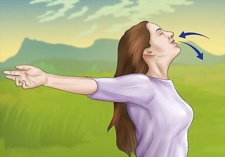 Practice breathing techniques. Breathing and relaxation techniques will help you regain control of your emotions when you are in the moment. Also, come up with a mantra that you can repeat to yourself to calm your nerves. When you feel your body becoming tense and your heartbeat growing faster, relax your shoulders and begin to breathe in and out. Instead of focusing on the dog, focus on your breathing. Inhale, hold your breath for a couple seconds, and then exhale. Repeat a positive mantra to yourself, like, "I am in control and I am not afraid of dogs. I know how to handle dogs."