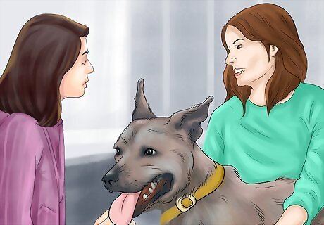 Talk to the owner first. When around a big dog, be sure to greet and talk with the owner first. This should be done while completely ignoring the dog. Your positive interactions with the owner will signal to the dog that you have a positive, non-threatening presence.