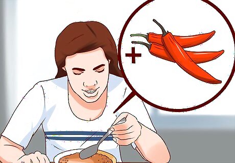 Spice up your meals. Another neat trick to get you feeling more satisfied is by adding some spice to your meals. This can help you feel more satisfied and may increase your metabolism. Add some cayenne pepper or hot sauce to your meals. It doesn't have to be a lot, but studies show that you may eat less and feel more satisfied with your meals as well. In addition, adding more spices to your meals has also been shown to help reduce the use of extra salt which can cut down on your overall sodium intake during the day.