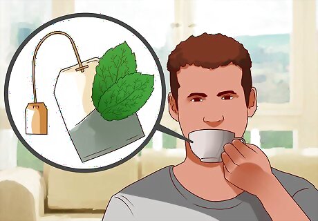 Sip on mint tea or suck on sugar-free mints. One way to help curb hunger throughout the day and trick your brain into feeling less hungry is by sipping on some hot mint tea or sugar-free mint candies. Mint has been shown to be an appetite suppressant. Including mint tea during the day or mint candies, can help decrease appetite. This is especially good to do right after you've completed your meal or snack. Not only does it curb appetite, but minty flavors help signal the brain that it is the end of the meal.