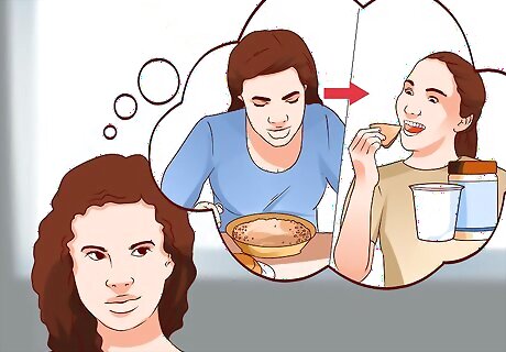Differentiate between physical hunger and "head" hunger. If you're fighting hunger throughout the day and are looking for ways to stay satisfied longer, you need to be able to differentiate between true physical hunger and hunger due to psychological or emotional reasons. Sometimes we feel "hungry" or have the desire to eat when in all reality, we aren't truly physically hungry. We might be bored, sad, upset, stressed or angry. These forms of head hunger may lead us to feel less satisfied over the day. Physical hunger includes sensations like: a growling stomach, a pit in your stomach, hunger pangs, feelings of nausea or light-headedness or even moodiness. Physical hunger also stops and goes away when you're satisfied. Emotional or head hunger may feel like: a strong desire or craving for a certain food, an overwhelming desire to eat, "hunger" that persists even after physical fullness and often comes with guilt or shame. If you're not physically hungry, try to figure out why you're having head hunger and address those issues as needed.