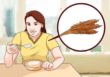 Add in a serving of whole grains. Like fruits and vegetables, whole grains are another great source of extra fiber. This delicious food group is an easy way to add fiber to meals and will help you stay satisfied longer. Whole grain foods are minimally processed and include all parts of the grain. This makes it higher in fiber, protein and other essential nutrients. Processed or refined grains on the other hand, do not have the fiber containing part of the grain. This makes them less fibrous and less nutrient dense overall. Include one serving of grains at your meals. Measure out 1/2 cup or 1 oz per serving. Whole grain foods to try include: whole grain oats, quinoa, brown rice, farro, whole wheat pasta, whole wheat bread or millet.