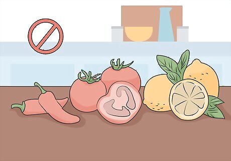 Avoid foods that often trigger your heartburn. This is the simplest way to prevent heartburn from starting. Keep track of the foods that often trigger your heartburn and do your best to avoid them. The triggers are unique to each person, but some common culprits are: Spicy foods, especially ones using hot peppers like cayenne. Acidic foods like citrus fruits, tomatoes, garlic, and onions. Fatty foods like fried or greasy products. Desserts, sweets, and carbonated beverages.