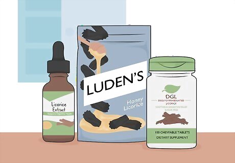 Use licorice liquid or lozenges to coat your esophagus. Licorice doesn’t neutralize acid, but it could create a mucous layer in your esophagus that protects it from acids. Try sucking on a lozenge or swallowing a spoonful of licorice liquid. If you’re prone to heartburn, you can have licorice before a meal to pre-coat your esophagus. This could prevent heartburn altogether, especially if you’re having a meal that often bothers you. The specific dosing for licorice depends on how concentrated the mixture is. Always follow the dosing instructions that come with the product so you don't take too much.