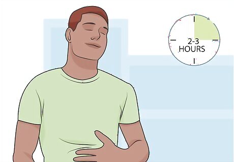 Remain upright for 3 hours after you eat a large meal. Laying back while food is still in your stomach can cause acids to spill back into your esophagus. Stay seated upright or standing for 2-3 hours after you eat large meals. This aids in digestion and keeps acids in your stomach. This is also why you shouldn’t eat heavy meals before bed. Stick with light snacks if you’re hungry close to bedtime.