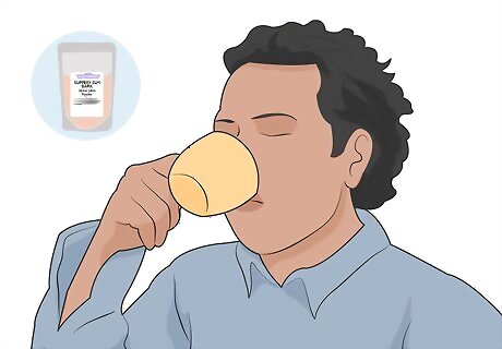 Drink slippery elm powder and water to protect your esophagus. Like licorice, slippery elm can also increase the mucous lining in your esophagus to protect you from acid. Stir a spoonful into a glass of water and sip it to see if this soothes your heartburn. If you find slippery elm too bitter, you can add a bit of honey to improve the flavor. A typical serving for slippery elm is 1-2 tbsp (15-30 g), so you can have more than a spoonful if the heartburn doesn't go away.