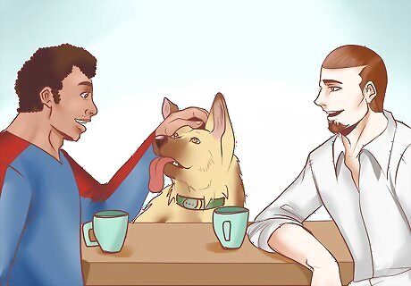 Socialize the dog. If you have a puppy, you should begin socializing them immediately. Bring different strangers into the house to meet and interact with the puppy. This will train your puppy that not all strangers are bad, and it can help them more accurately judge a bad situation, instead attacking or lunging at every single person who enters your home. A good guard dog should be aloof towards strangers. This means that they recognize strangers and may even bark at strangers, but they will not lunge towards, attack, or bite strangers. You do not have to worry about socialization reducing the effectiveness of the guard dog. Proper socialization will reduce fear and aggression in the dogs, and it will teach them the difference between a positive experience with a stranger and a negative one.