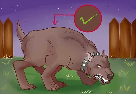 Assess their fear and anxiety. The best guard dog is one that acts friendly and calm when you’re not in danger but who can jump into action when an intruder or threat is near. A dog that acts out of fear and anxiety will become aggressive not just toward strangers but towards family members, children, and non-threatening guests. When meeting a potential dog, look for signs of anxiety or fear, such as: Licking their lips Lips pulled back Ears pressed against their skull Growling Whimpering Staring